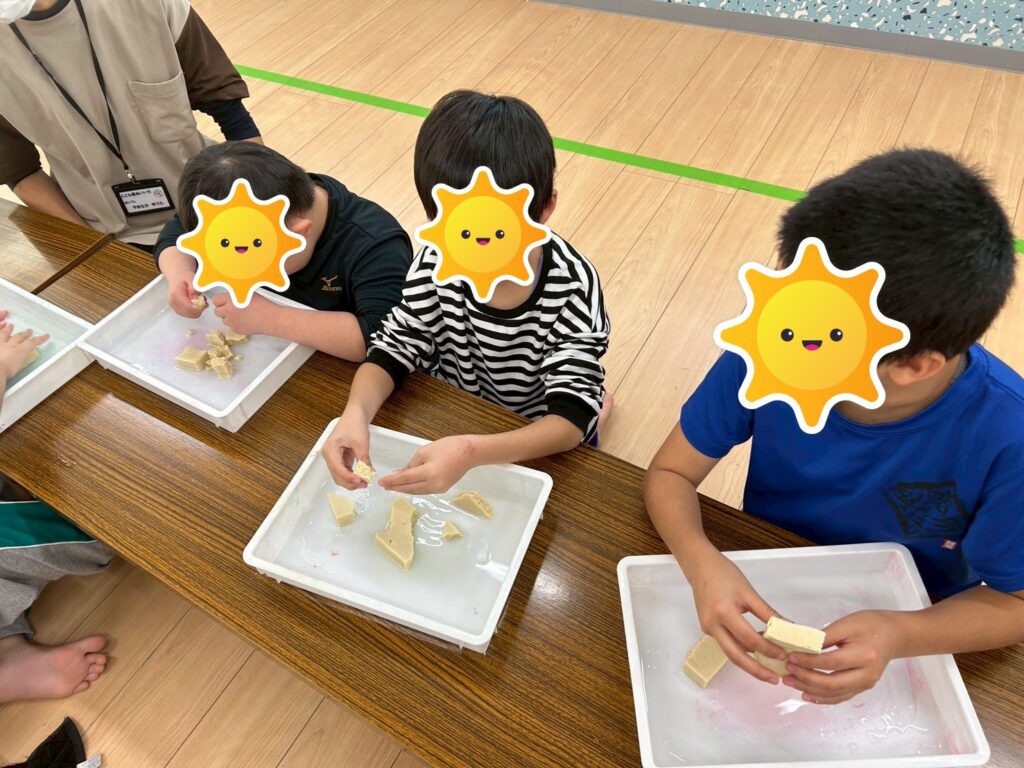 高野とうふを初めて触る子もいて