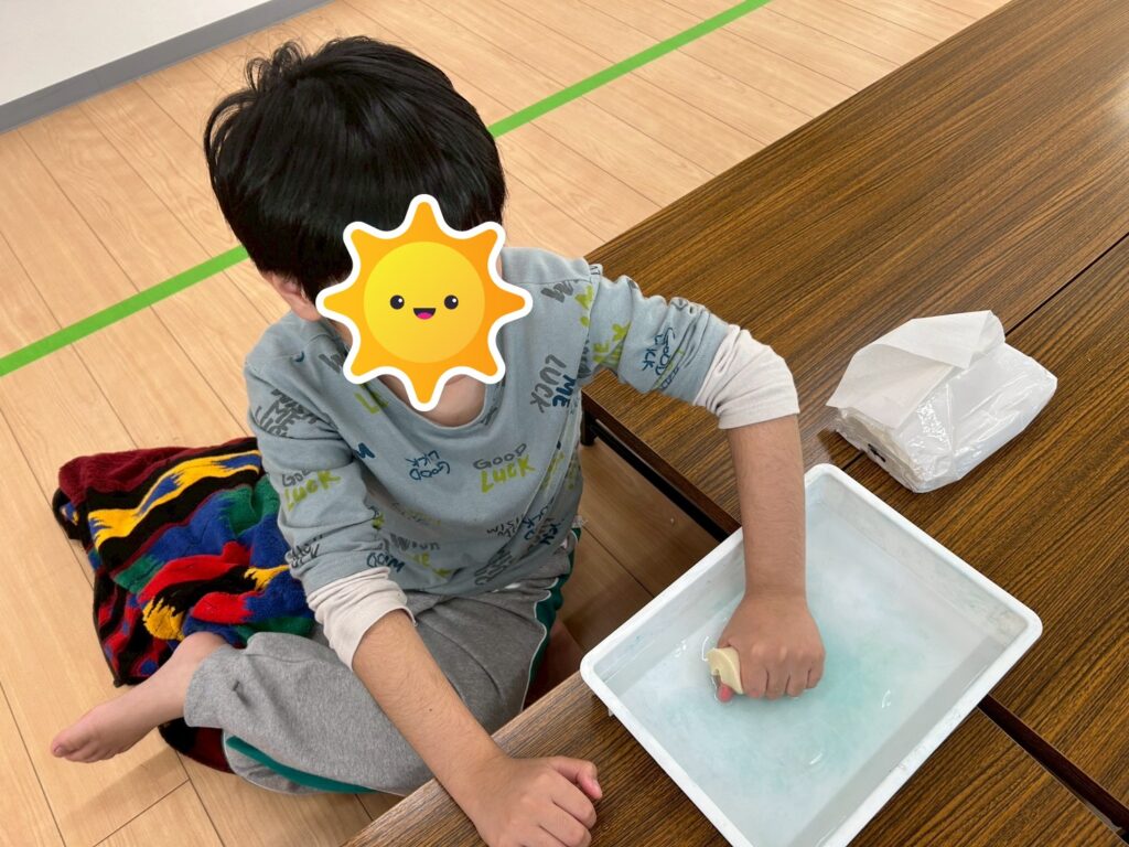 午後は感触遊びで”高野とうふ”