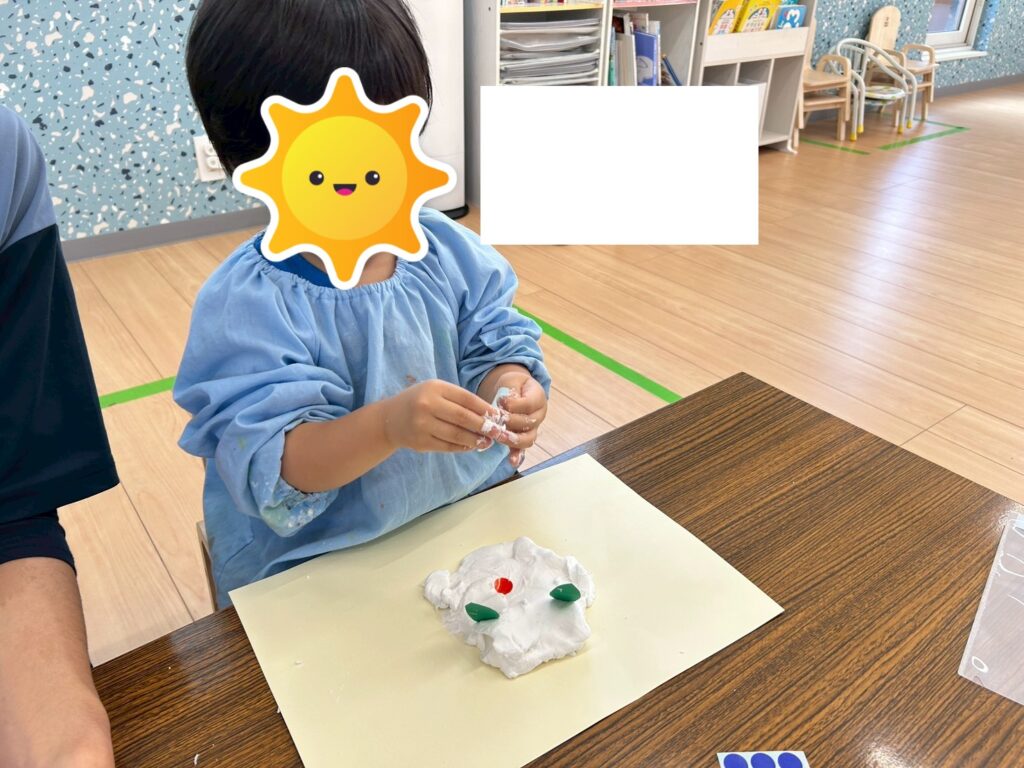 紙粘土の感触を感じながら
