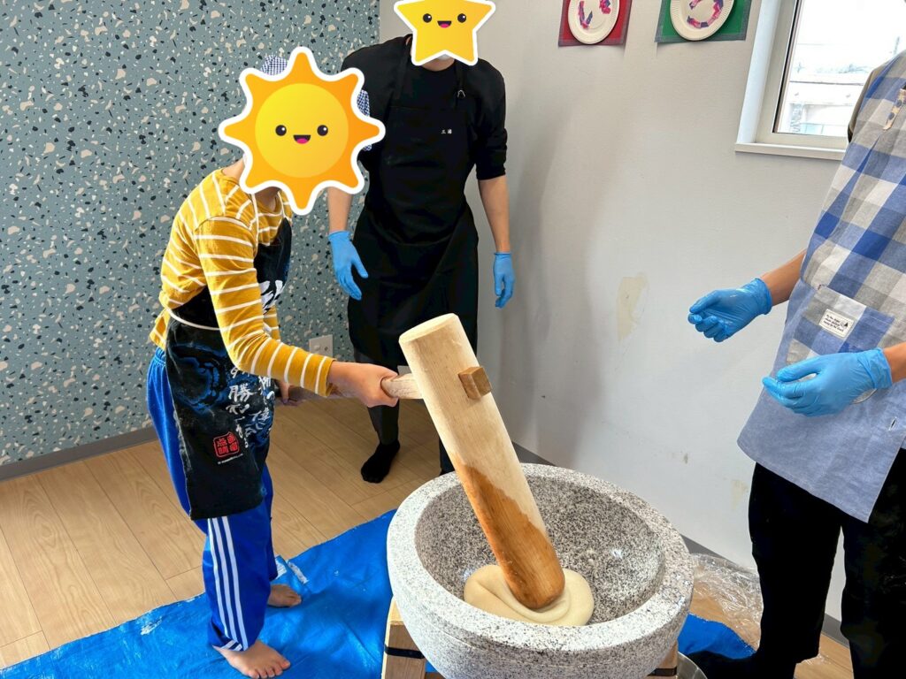 今日は季節行事で餅つきを行いました✨