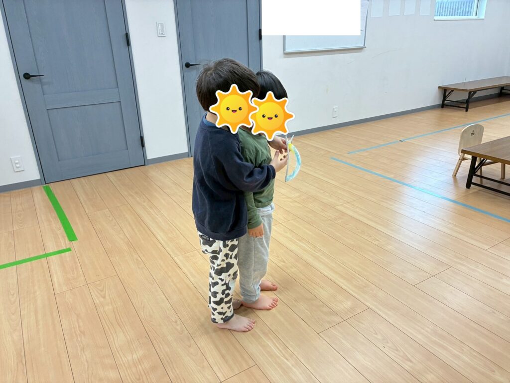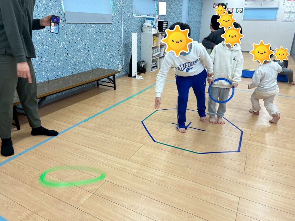子どもたちが持っているリングを