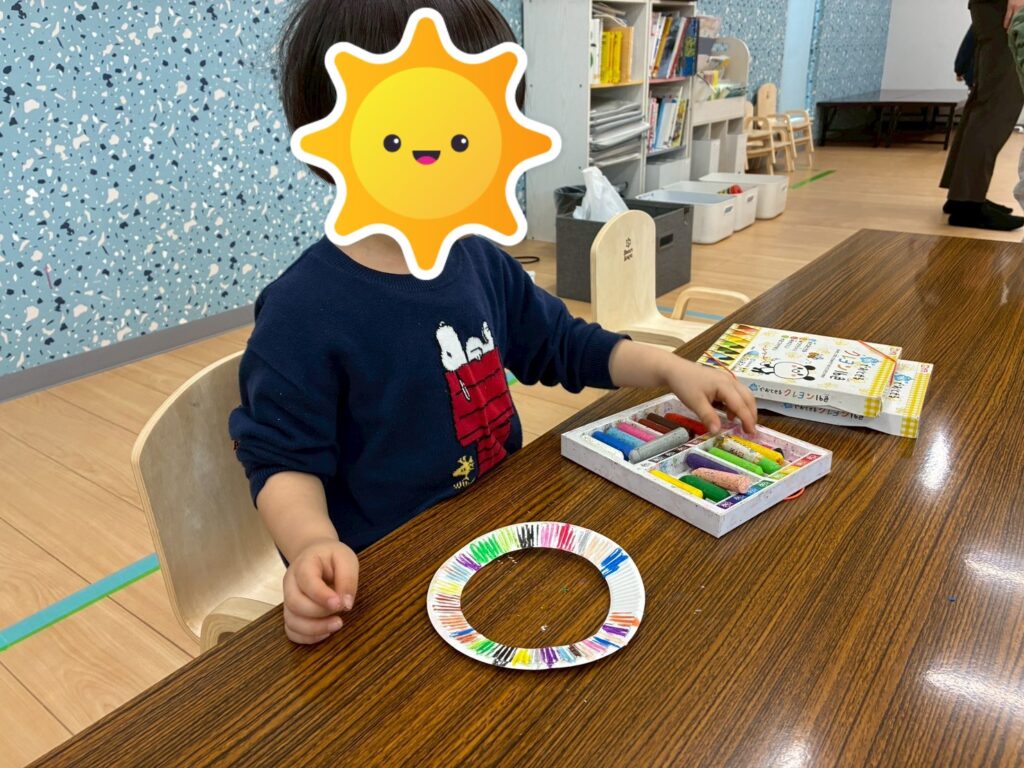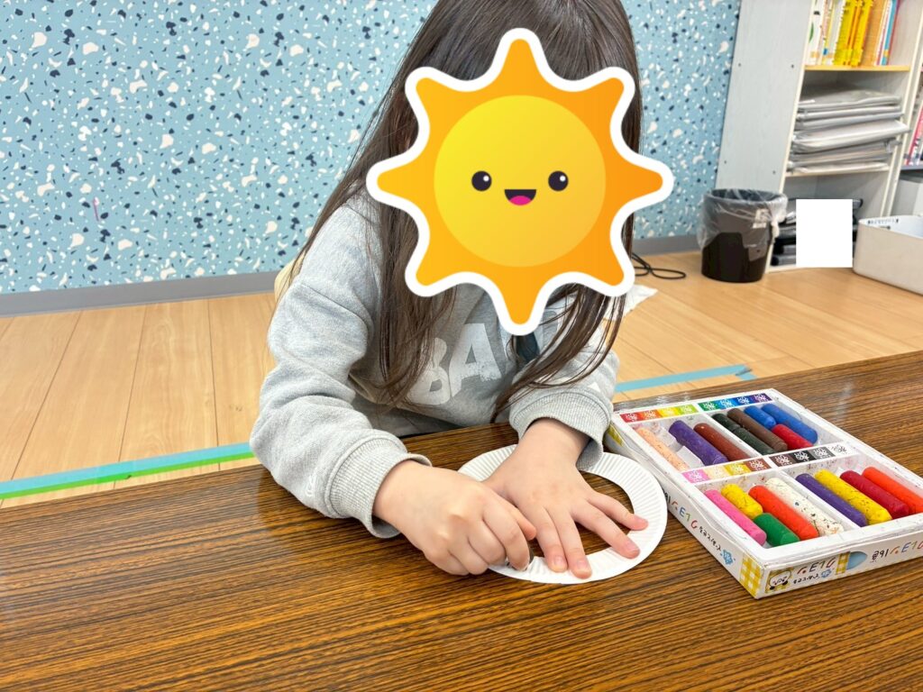 クレヨンで紙皿を塗り