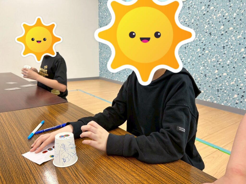 紙コップに自分で色をつけたり