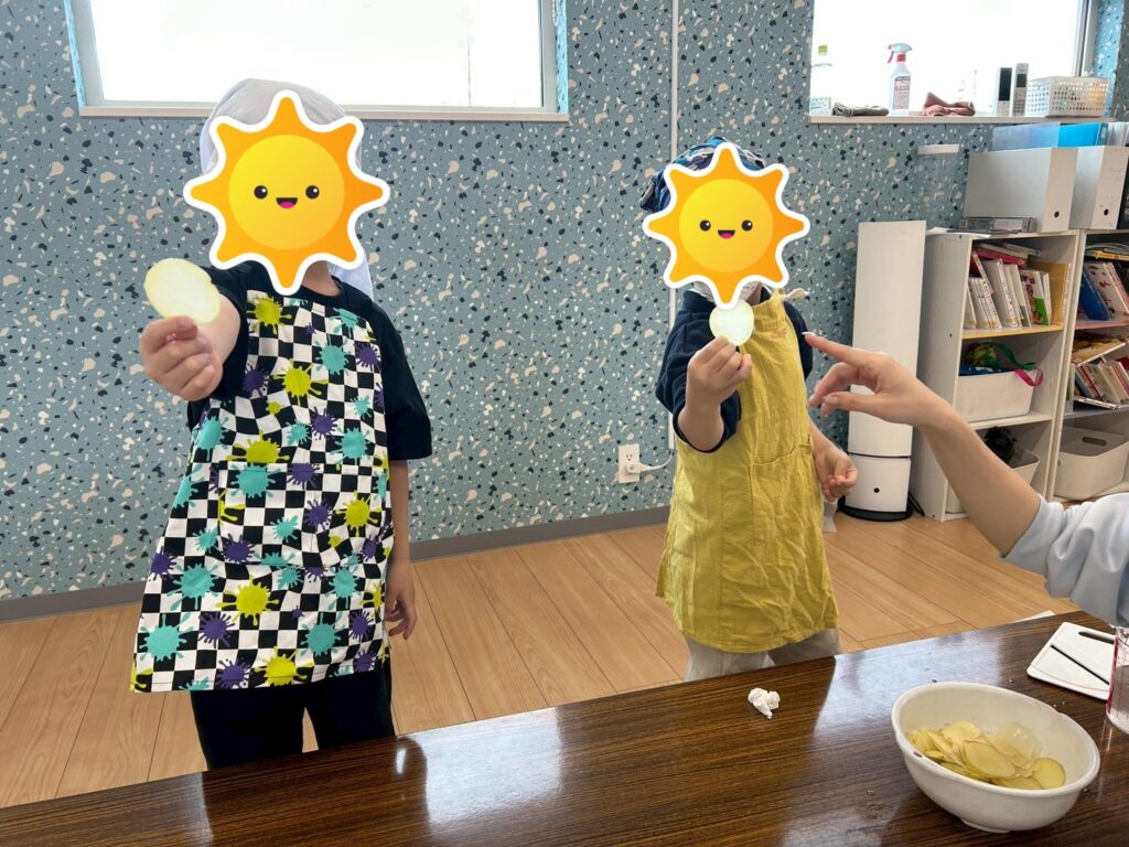 ポテトチップスの形に切りました😉