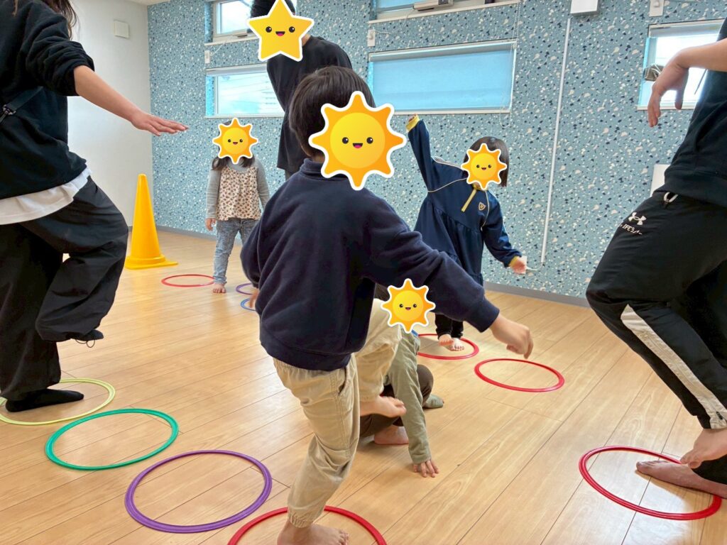 幼児はリングを使いケンケンで